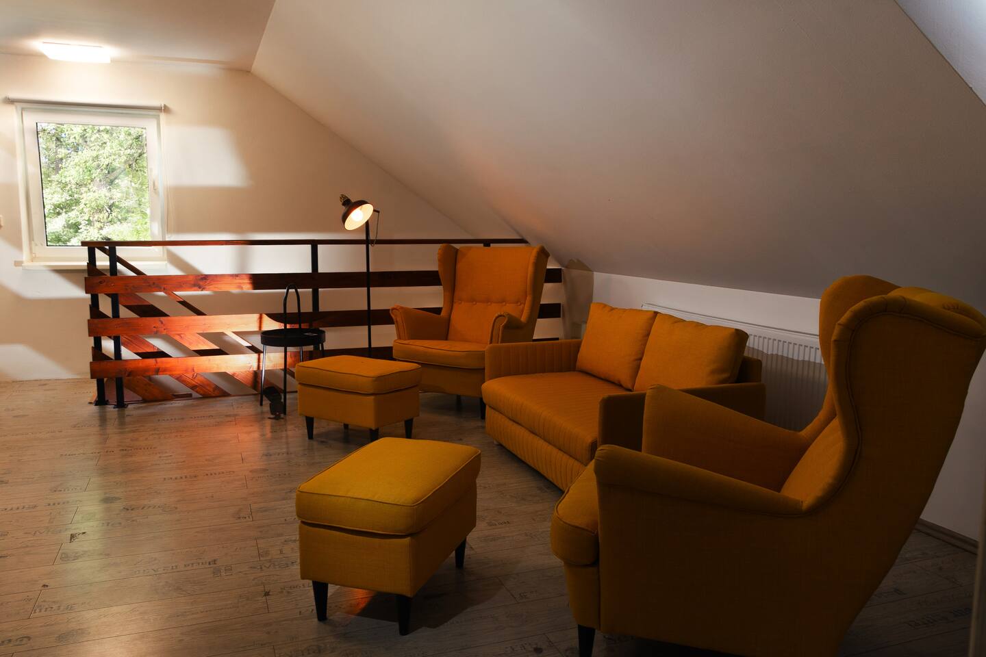 Spacious house in a quiet part of Prague, right next to the forest, offers an ideal holiday with a unique combination of nature and quick access to the historic center of Prague (20 min by train). The train station is 10 minutes on foot. The house is equipped with fully equipped kitchen, fireplace for evening comfort, comfortable armchairs, fast internet and TV and is suitable for up to 10 guests. The huge garden provides great spot for picnics and relaxation. An amazing stay close to nature.
